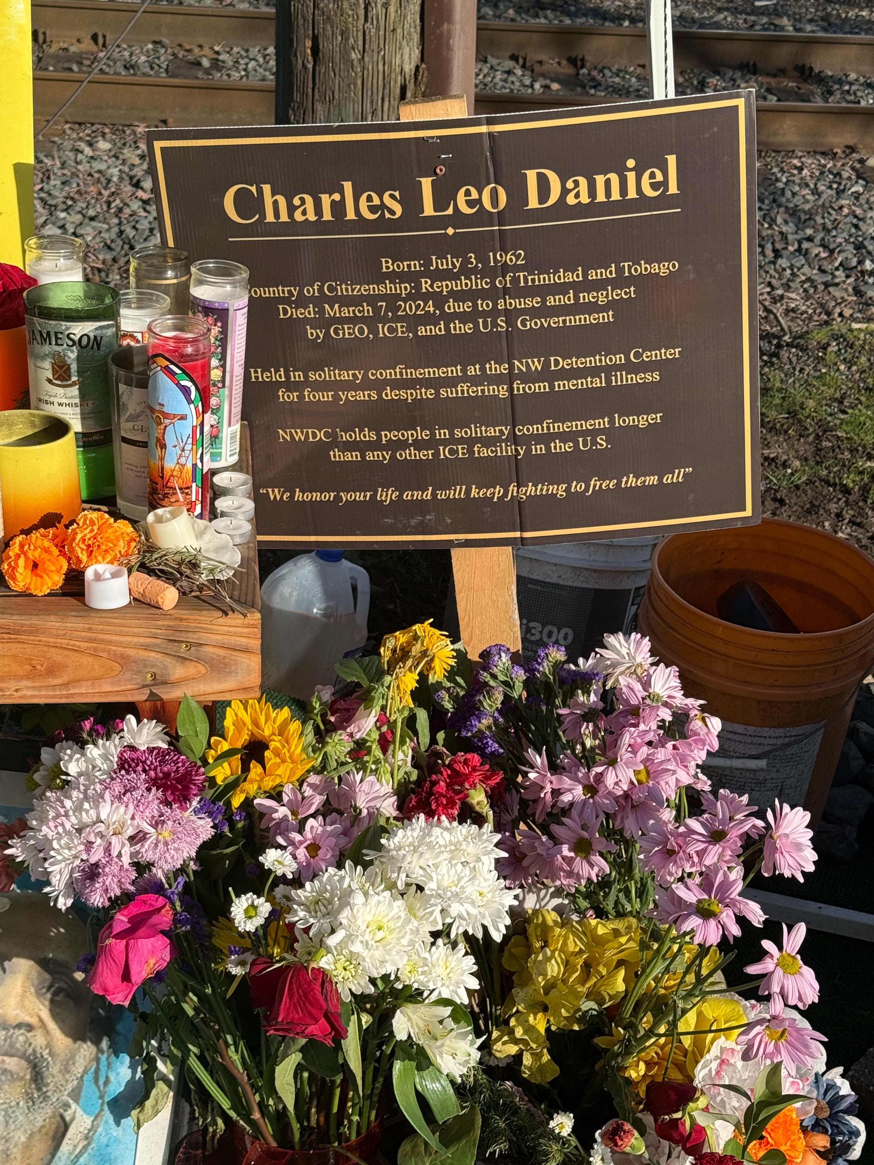 This afternoon my mom and I spent some time outside the Northwest ICE Processing Center, formerly known as the Northwest Detention Center, one of the largest immigration prisons in the US. It is a short 12-minute drive from the house where I grew up, hidden in the heart of Tacoma’s industrial tideflats, not far from the site of the lumber mill where my great-grandpa worked and died. Like many ugly places in my hometown, it is blessed with a stunning view of the Mountain.
