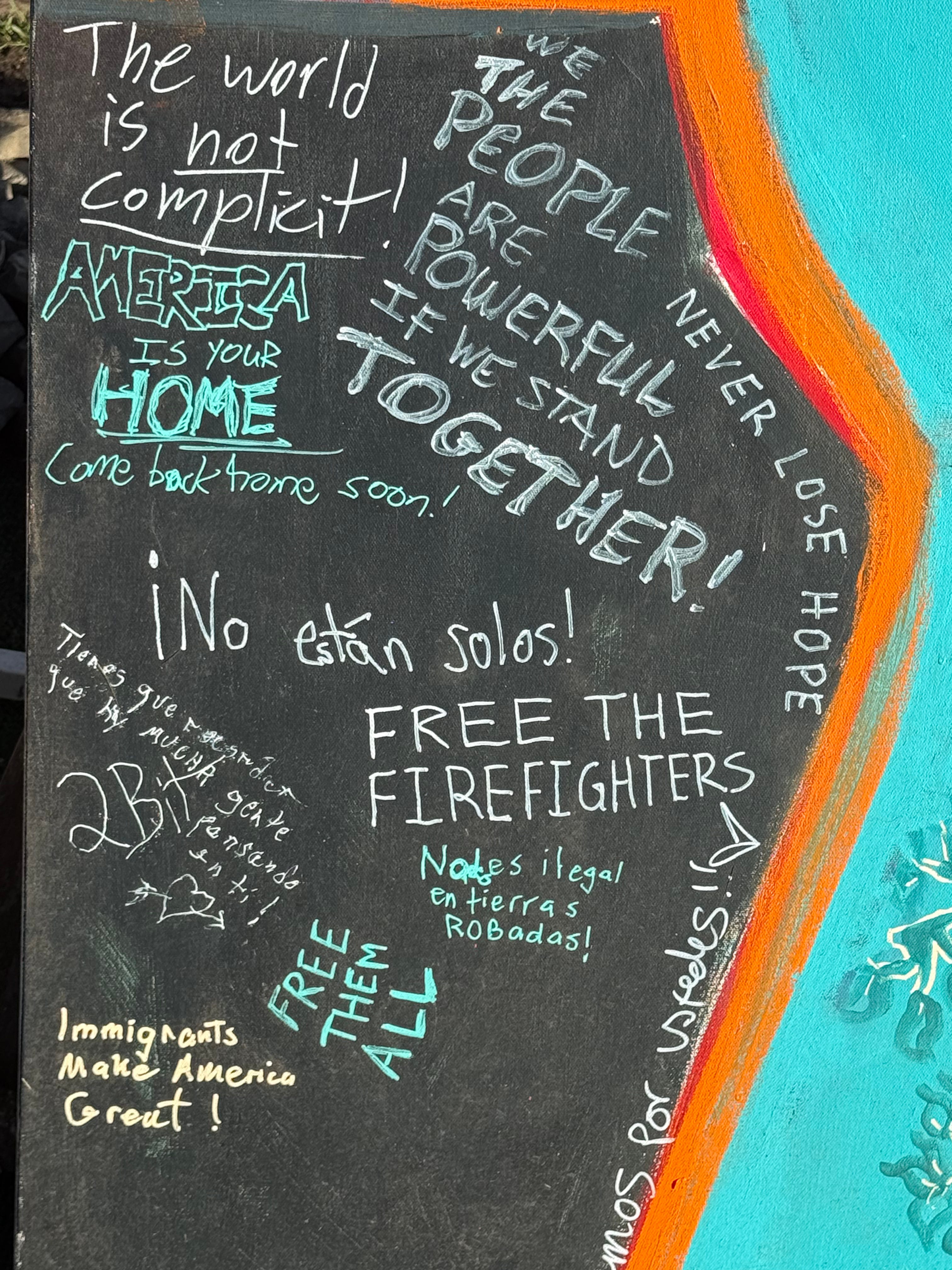 Anyone can visit people in detention. One of the volunteers we talked to visits three men regularly, for an hour each time. My mom said, what is that like? He said, they all miss their families. We talk about their families.