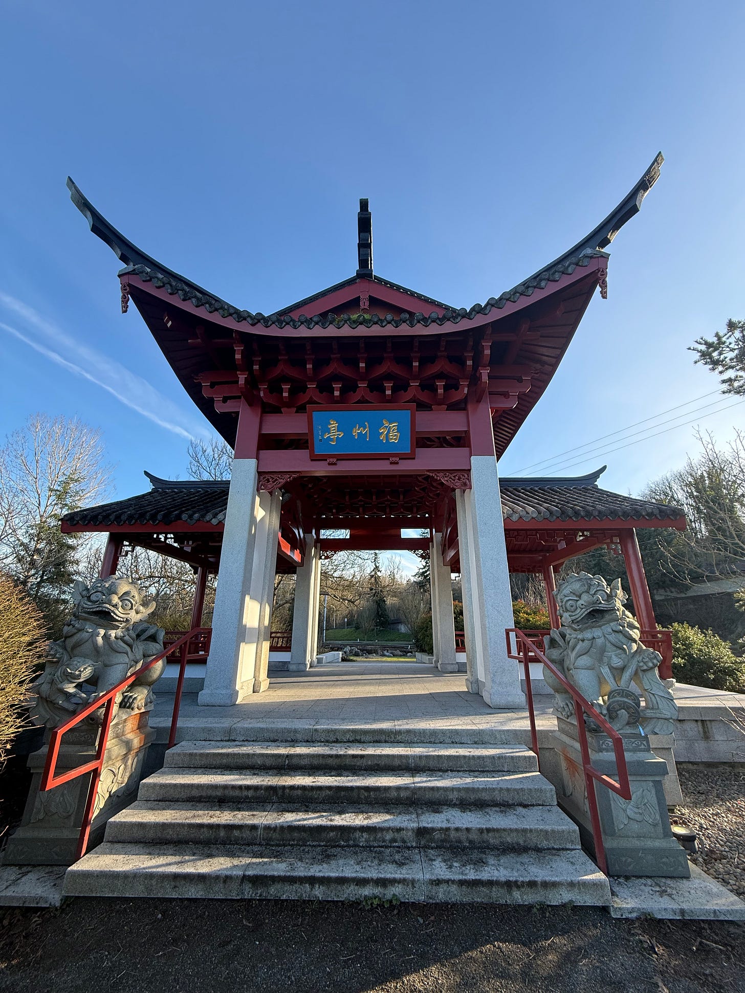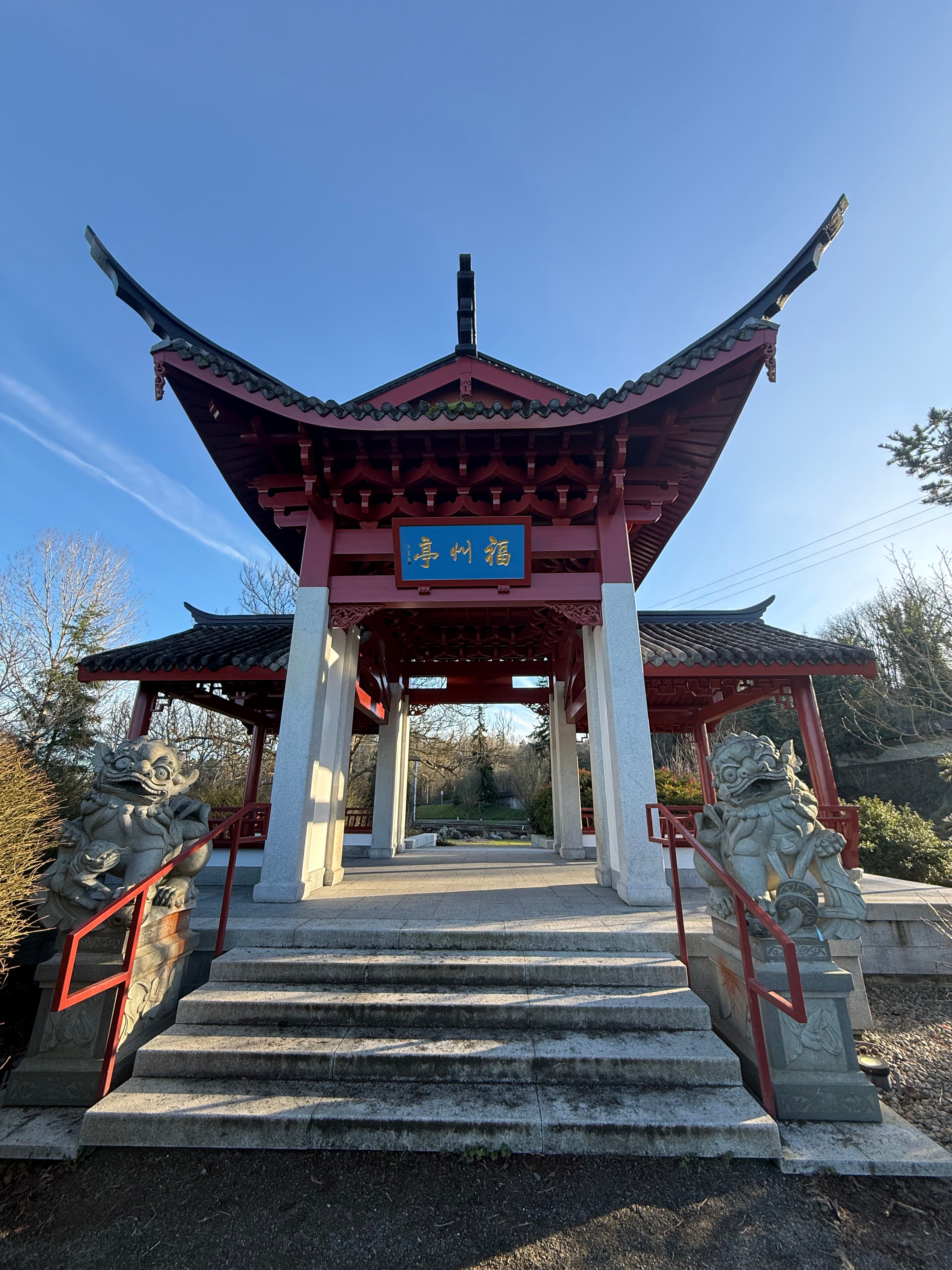 The park is a peaceful stretch of ground by Puget Sound, with sculptures and a bridge and historical placards and beautiful hand-carved lions donated from China, which were viciously vandalized ten years ago, their teeth knocked out, their tongues ripped out.
